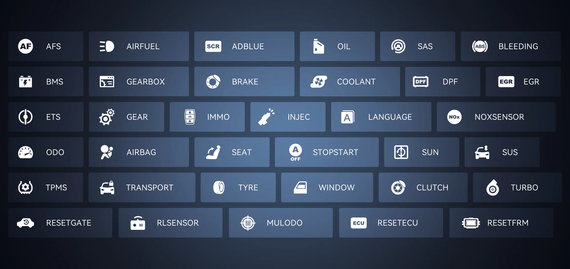 Teostage 35+ olulist hooldustoimingut – alates õli põhilistest lähtestustest kuni täiustatud käigukasti sobitamiseni. Tehke pingutuseta rutiinseid ülesandeid (õlituled, piduriõhutus) ja keerulisi kalibreerimisi (aknad, käigukastid) ühe MUCAR 892BT-ga. Hoidke sõidukid optimaalses töökorras tänu põhjalikule süsteemihooldusele.